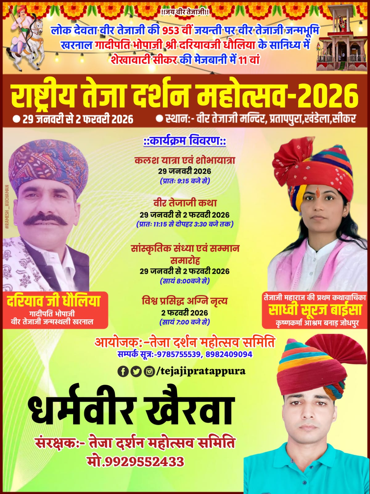 | धर्मवीर खेरवा | Dharmveer kherwa | 9929552433 | 10/24/2025 | प्रतापपुरा | खंडेला | संरक्षक | 304 |